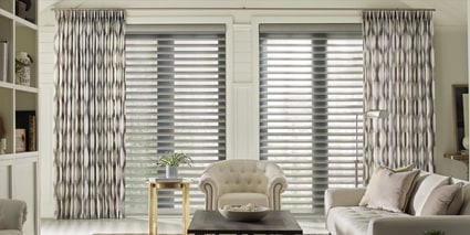 Large Selection of Colors & Finishes—Available in fabric, vinyl, and aluminum, Somner blinds offer the largest selection of colors and finishes, from smooth metal finishes to geometric patterns.